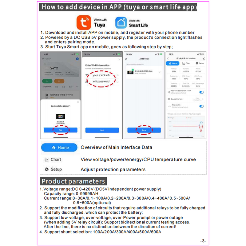 Remote Control:Connect the DT20 meter Wi-Fi to 2.4GHz Wi-Fi, then you can monitor or adjust on your phone through the app at any time anywhere.