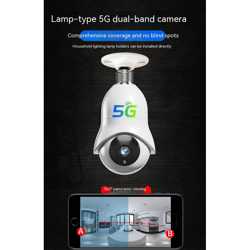 Dual Band Outdoor Night Vision High-definition Light Bulb Monitoring Wireless 100W720P 32G Memory Card 1MP Smart Night Vision