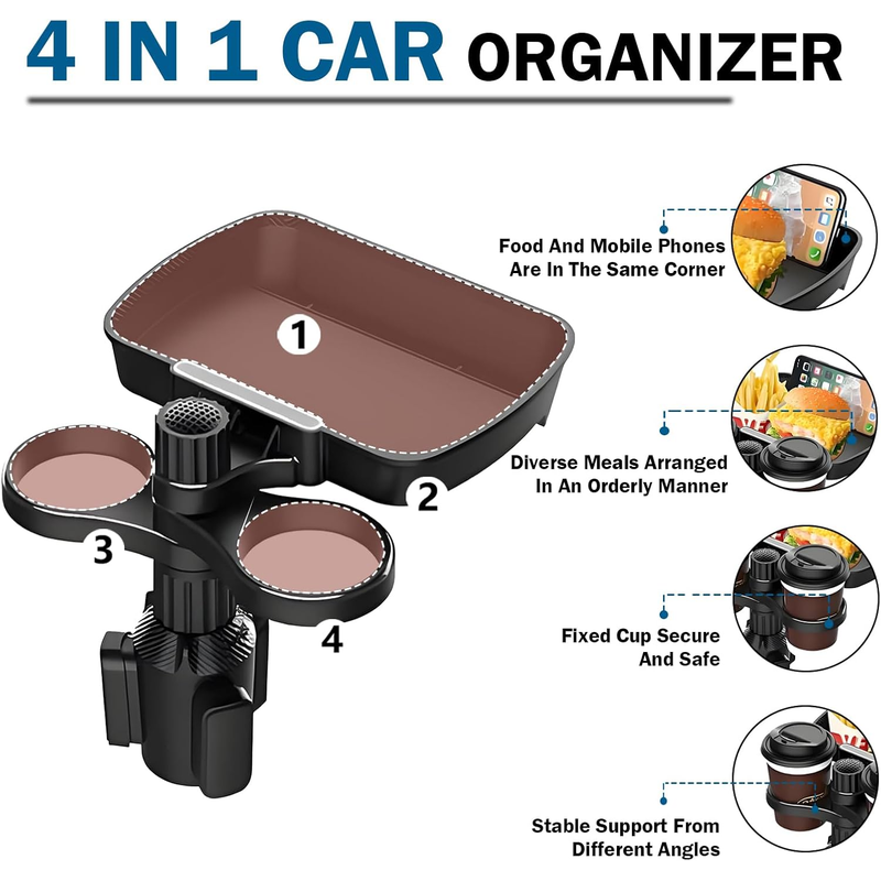 • Dual Cup Holder Expander :The dual cup holder expander allows you to hold two cups or bottles at once, making it perfect for long road trips or when you need to drink multiple beverages.