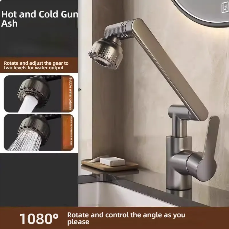 Dual Mode Universal Rotating Faucet Robotic Arm Wash Basin Kitchen Bathroom Hot and Cold Household Basin Wash Basin Sink