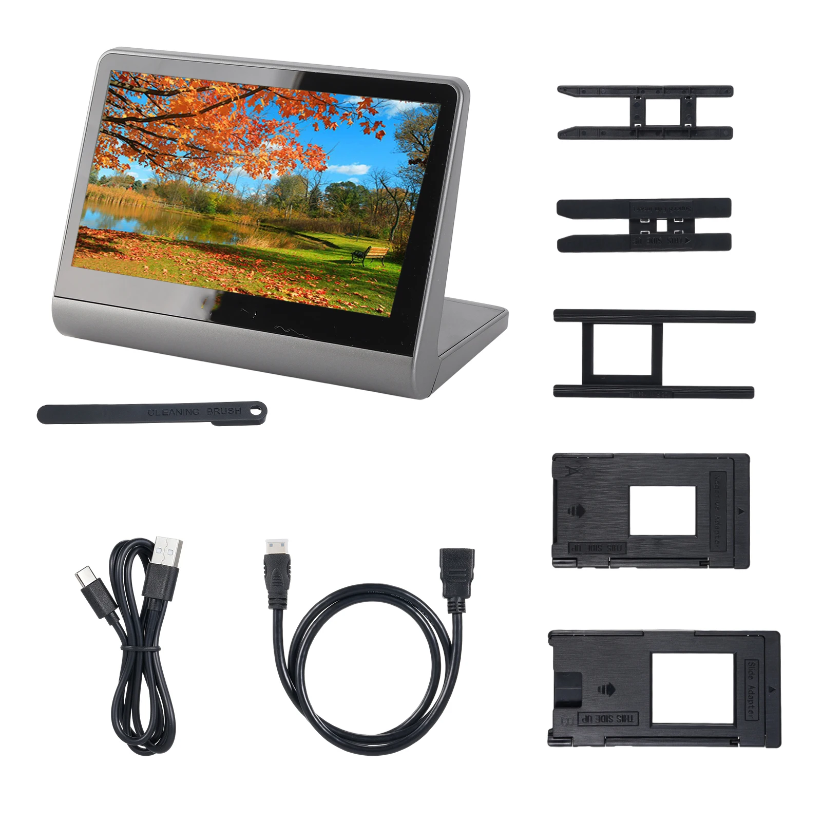 Bisofice Film and Slide Scanner for 135 Film(36*24mm)/126KPK /110 Film/Super8/ Monochrome/Slide to Digital JPEG Photos Built-in 16GB Memory 7'' LCD Screen Free APP Support 48W Pixels Display Connect w