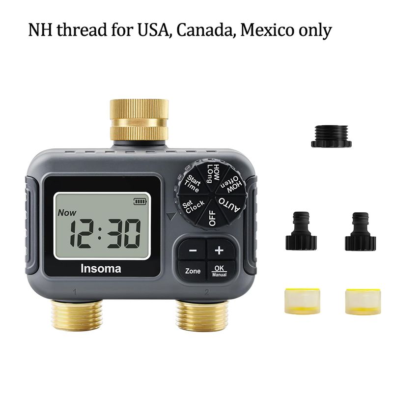 Insoma Smart Irrigation Watering System Dual Outlets Automatic Water Timer Sprinkle Faucet Hose Programmer for Garden Outdoor