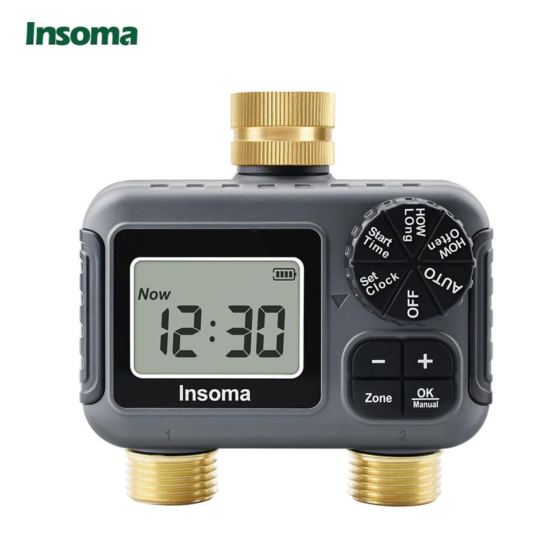 Upgrade your garden care with the Insoma Garden Watering Timer, featuring dual programmable zones, automatic watering, rain delay mode, and three manual watering modes. With a durable design, easy-to-read LED display, and low battery alert, enjoy worry-free garden maintenance.