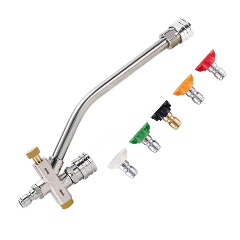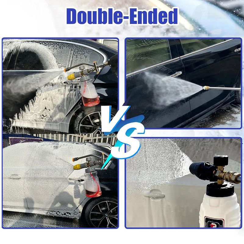 Transform your cleaning routine with our innovative foam blaster dual-connector accessory, designed to connect a pressure washer nozzle and snow foam canon simultaneously.
