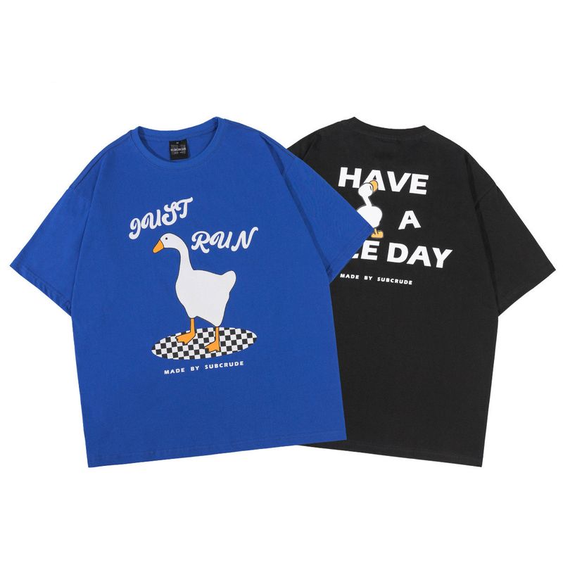 Duck Print Short Sleeve T Shirt For Men Black 2XL
