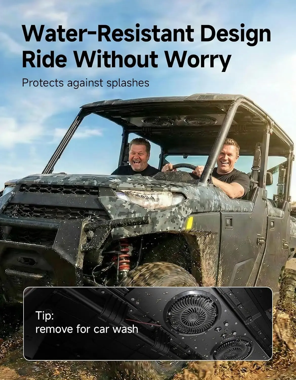 With an IP66 rating, this roof fan is protected against dust ingress and water spray, making it reliable in rainy and muddy conditions. The durable housing ensures long-term outdoor performance. (Note: Remove the fan before high-pressure washing.)