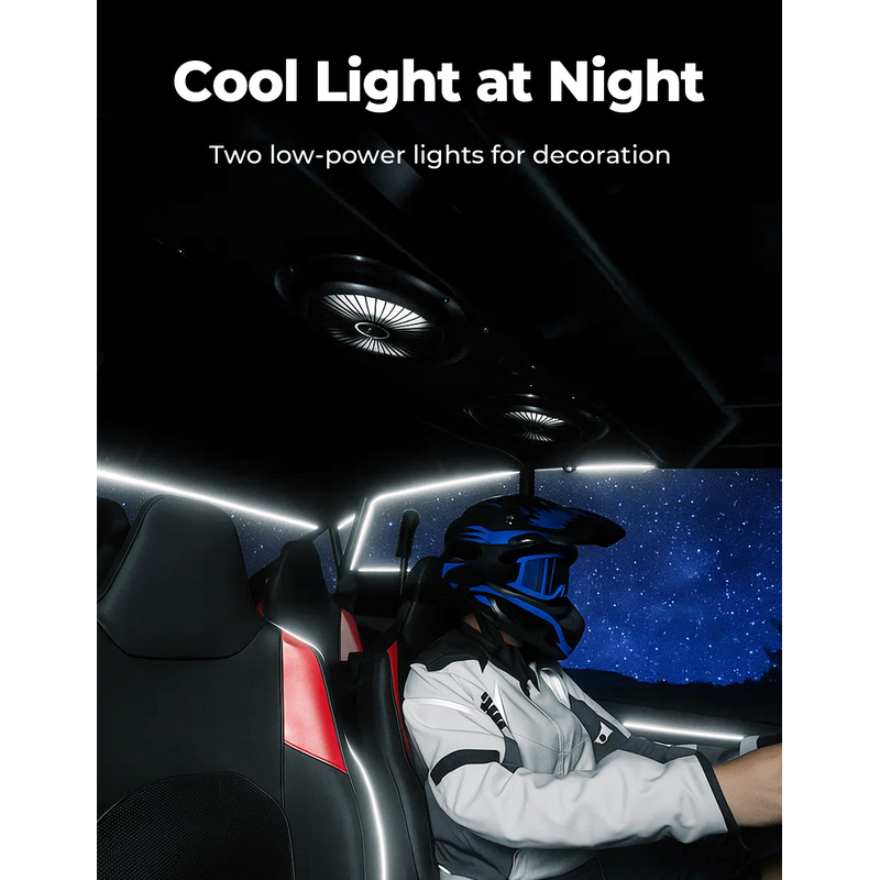 The upgraded version features two integrated white LED dome lights that provide brighter and more even cabin illumination. With an independent switch design, the lights can be used separately from the fan system, improving usability during night driving.