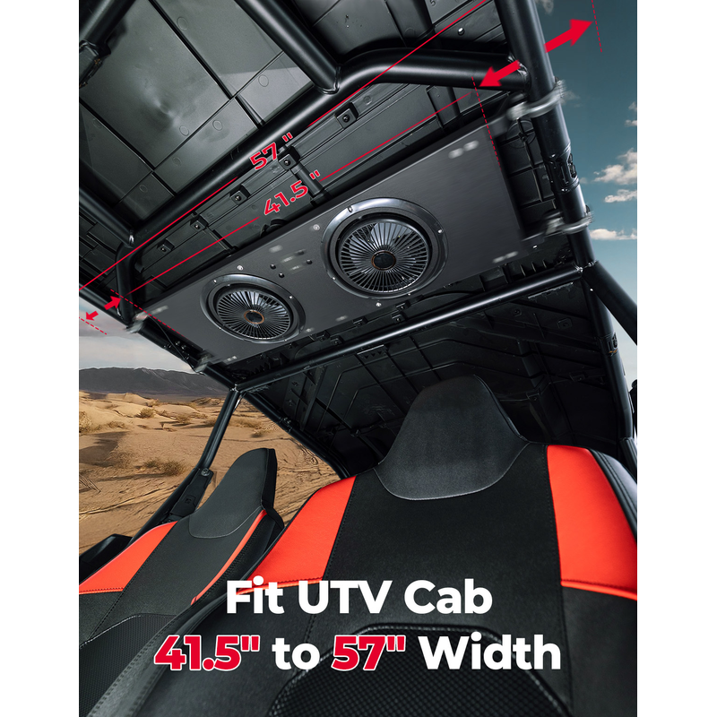 Two powerful 8-inch fans deliver up to 930 CFM airflow at 3000 RPM, powered by an 80W system with 6.6A operating current. The strong airflow improves cooling efficiency and helps push dust out of the cabin for a cleaner riding environment.