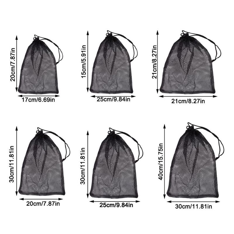Durable Black Nylon Mesh Drawstring Storage Pouch Bag Multi Purpose Home Travel Outdoor Activity Pouch Laundry Bag