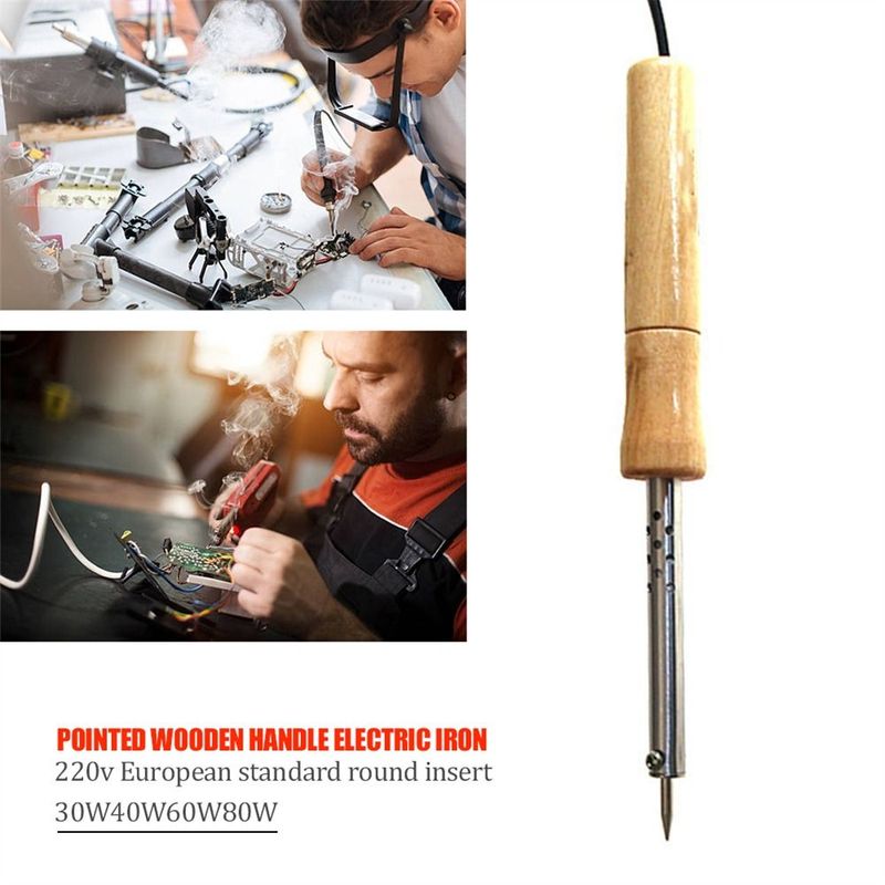 Durable Rework Statian 30W/40W/60W/80W/100W Electric Soldering Iron Solder Supply Adjustable Temperature Wooden Handle