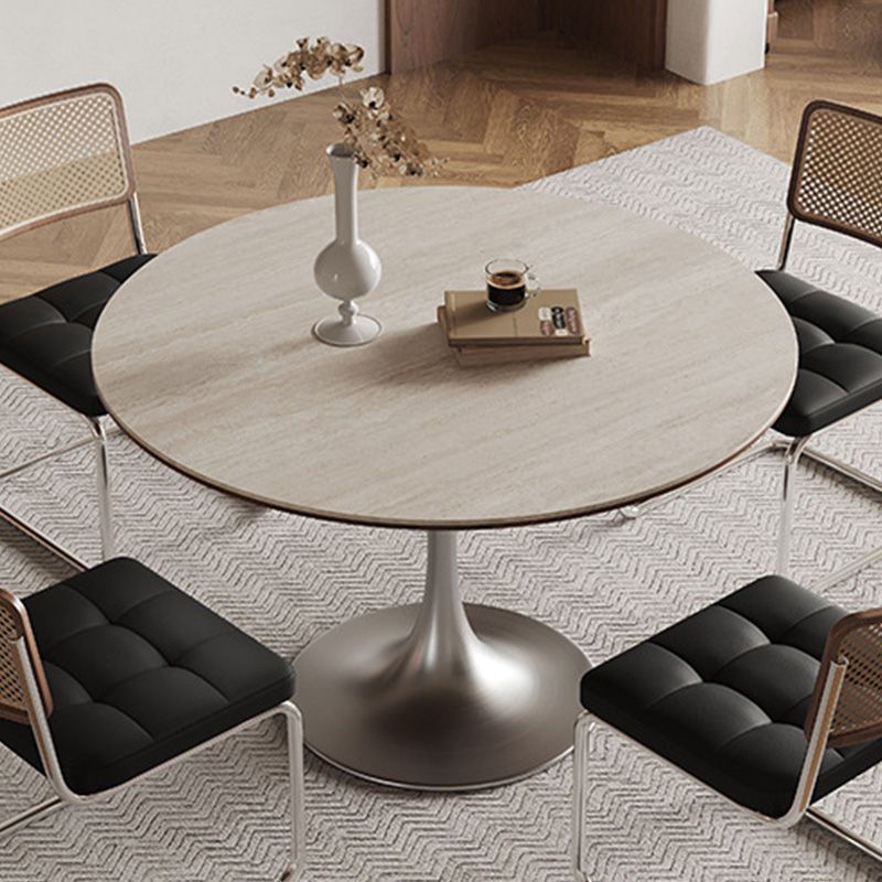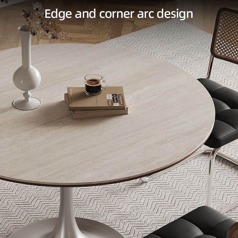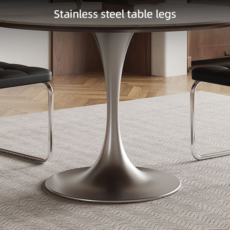 Durable Rock Slab Dining Tables with Stainless Steel Base Modern Round Dining Room Kitchen Table Simple Restaurant Dinner Table