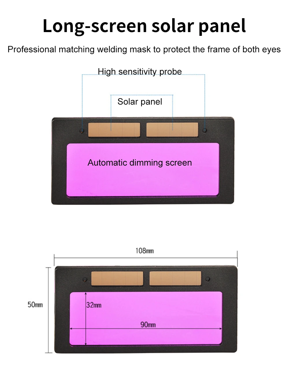 2. Long-screen solar panel: professional matching welding mask to protect the frame of both eyes