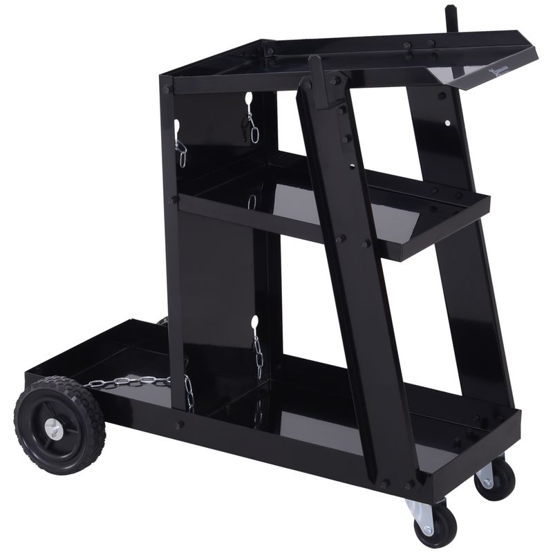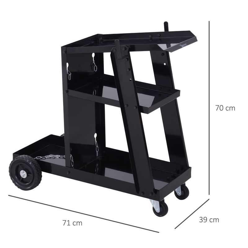 DURHAND Three-Tier Welding Cart Welder Trolley for Gas Bottles w/ Wheels, Black