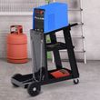 Keep tools organised with this gas bottle trolley from DURHAND. Four wheels at the bottom for easy movement – you'll have your equipment wherever needed, which will be stored on the three shelves. Made from solid steel, the the welding cart can carry up to 50kg of equipment, whilst its slanted surface lets you easily place and use tools. ● Steel frame with a durable finish