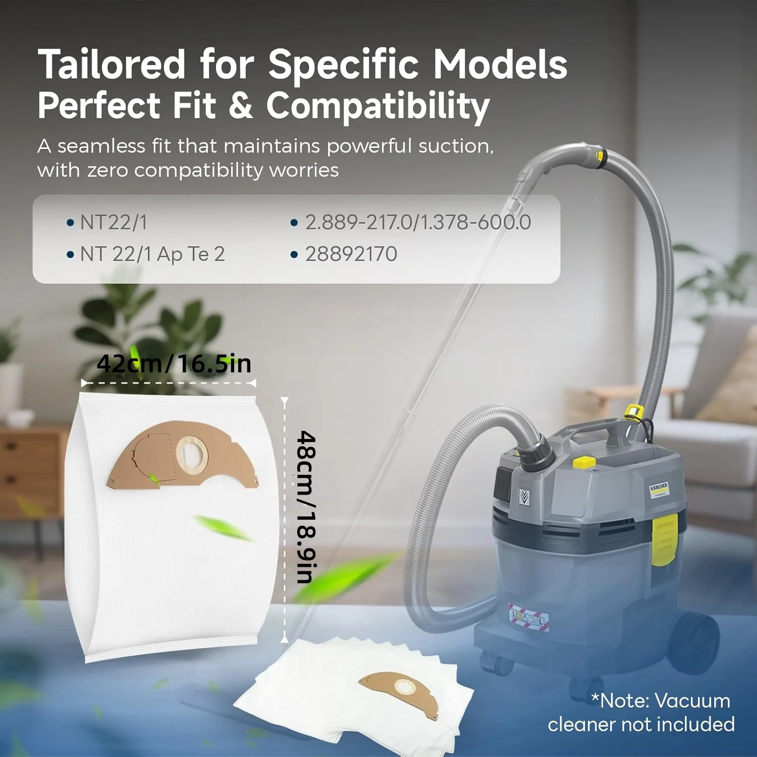 • 【Designed for NT 221】This vacuum cleaner bags is designed for Kärcher NT 221 series. It is perfectly compatible with Karcher NT 22/1 Ap L, NT 22/1 Ap Te L, as well as the numbers 2.889-217.0, 1.378-600.0 and 28892170 for wet and dry vacuum cleaners. Guaranteed effective filtration and optimal compatibility.
