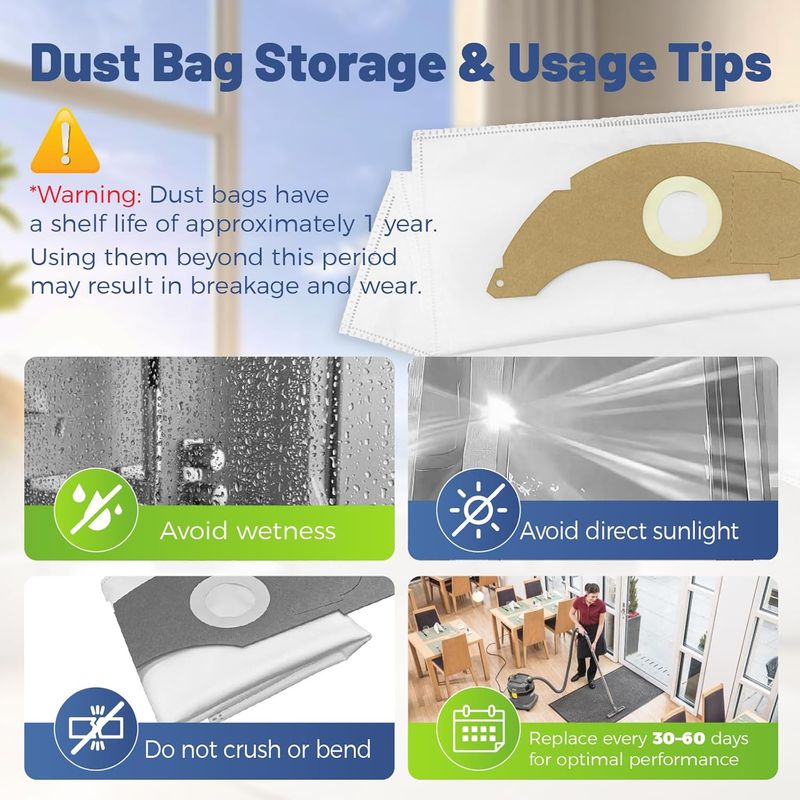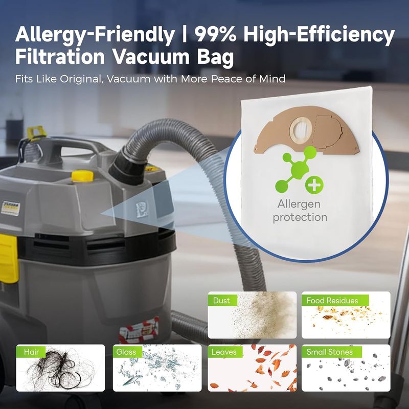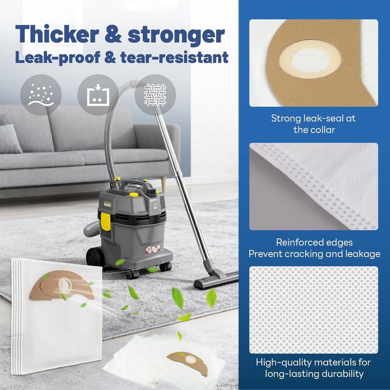 • 【Large Capacity & Durability】Dust bag specially designed for Kärcher NT 22/1, this vacuum cleaner bag has a capacity of 2.5 litres, will effectively capture debris and hair, and last up to 60 days - for fewer replacements.