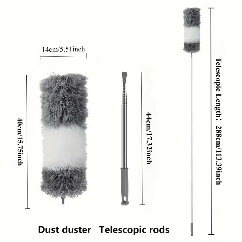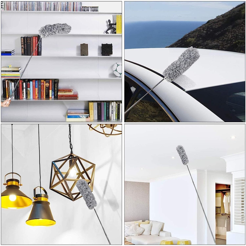Duster with Extension Rod, Retractable Dust Brush, Microfiber Dust Brush, Reusable, Washable Ceiling Cleaning Tool