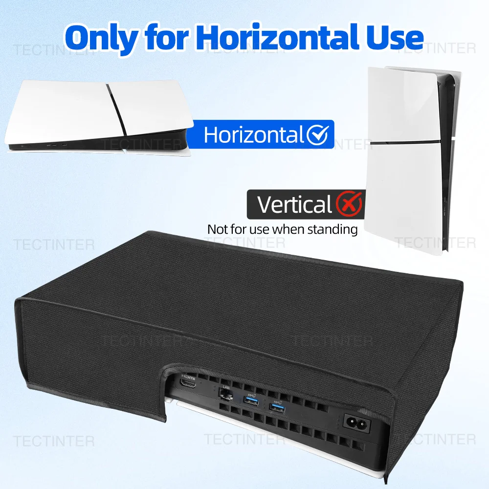 This dust cover is specially designed for PS5 Slim Digital Edition and Disc consoles in horizontal mode only, ensuring a perfect fit and maximum protection for your console.