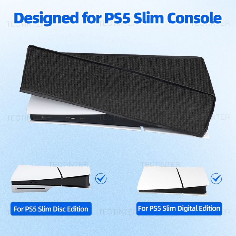 This dust cover is specially designed for PS5 Slim Digital Edition and Disc consoles in horizontal mode only, ensuring a perfect fit and maximum protection for your console.