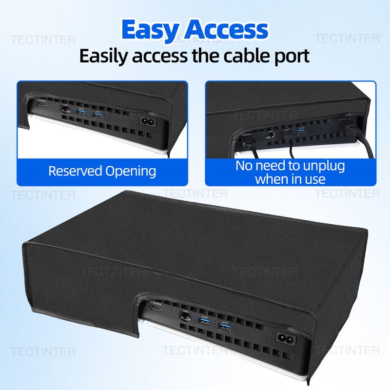 With a back-end cutaway design, this dust cover allows you to easily access the cable port without the need to unplug the cables. It ensures that your console stays connected while being protected from dust and scratches.
