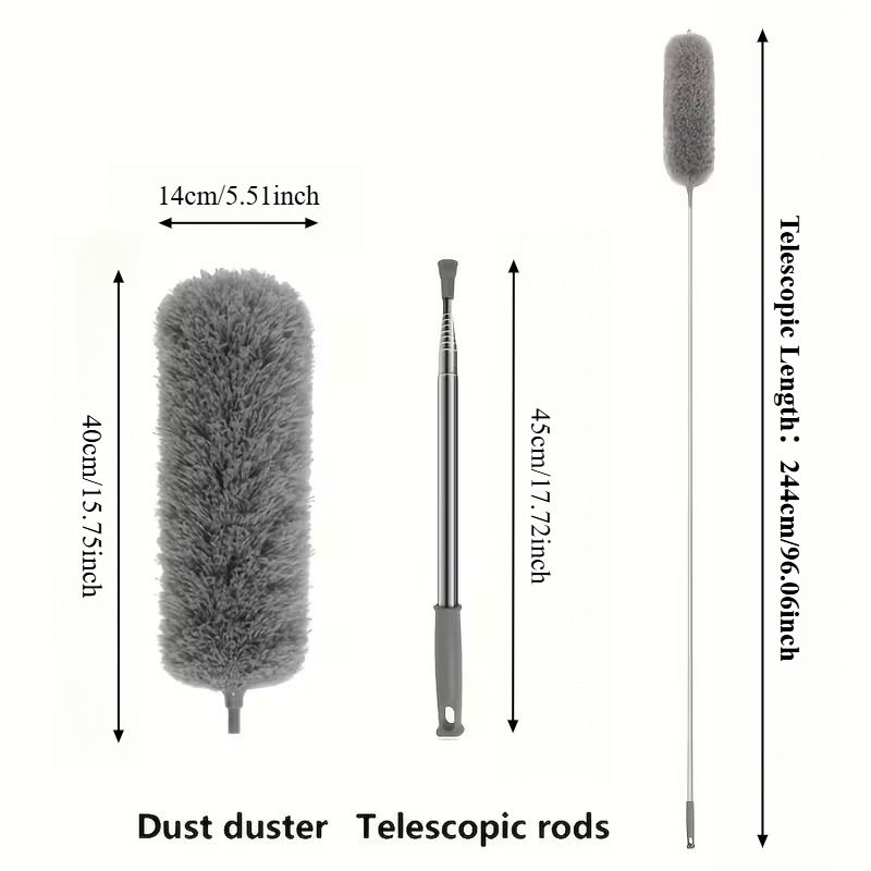Duster with Extension Rod, Retractable Dust Brush, Microfiber Dust Brush, Reusable, Washable Ceiling Cleaning Tool