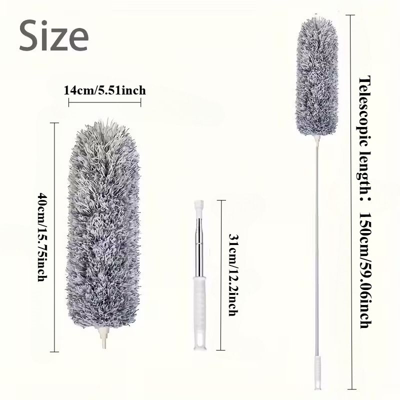 Duster with Extension Rod, Retractable Dust Brush, Microfiber Dust Brush, Reusable, Washable Ceiling Cleaning Tool