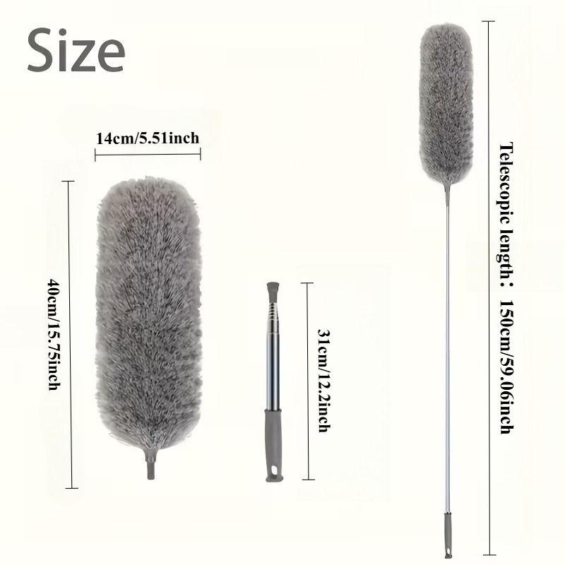 Duster with Extension Rod, Retractable Dust Brush, Microfiber Dust Brush, Reusable, Washable Ceiling Cleaning Tool