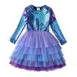 DXTON 2024 Girls Dresses Winter Children Birthday Party Costumes Mermaid Sequin Princess Tutu Dress Patchwork Toddler Mesh Dress