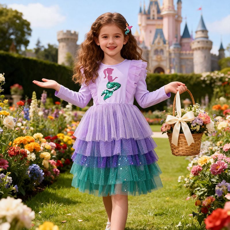 DXTON 2024 Girls Dresses Winter Children Birthday Party Costumes Mermaid Sequin Princess Tutu Dress Patchwork Toddler Mesh Dress