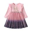 DXTON Girls Sequined Dresses Children Cartoon Print Dress Long Sleeve Birthday Party Dress Toddlers Girls Tulle Princess Dresses
