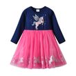 DXTON Girls Sequined Dresses Children Cartoon Print Dress Long Sleeve Birthday Party Dress Toddlers Girls Tulle Princess Dresses