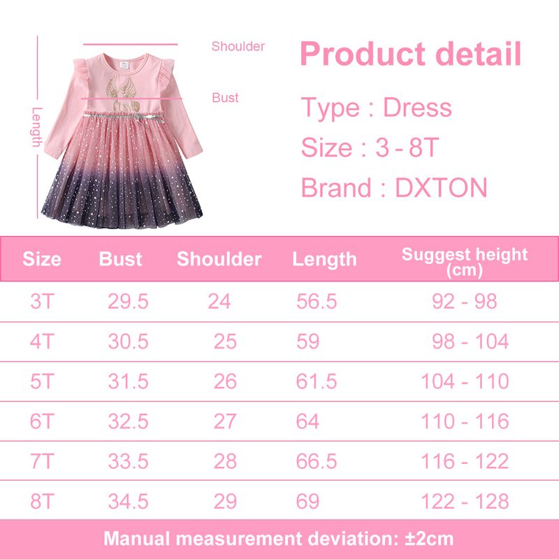 DXTON Girls Sequined Dresses Children Cartoon Print Dress Long Sleeve Birthday Party Dress Toddlers Girls Tulle Princess Dresses