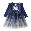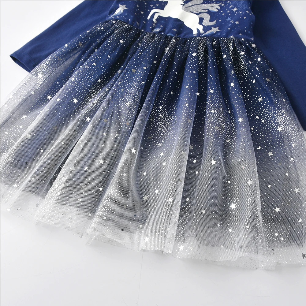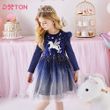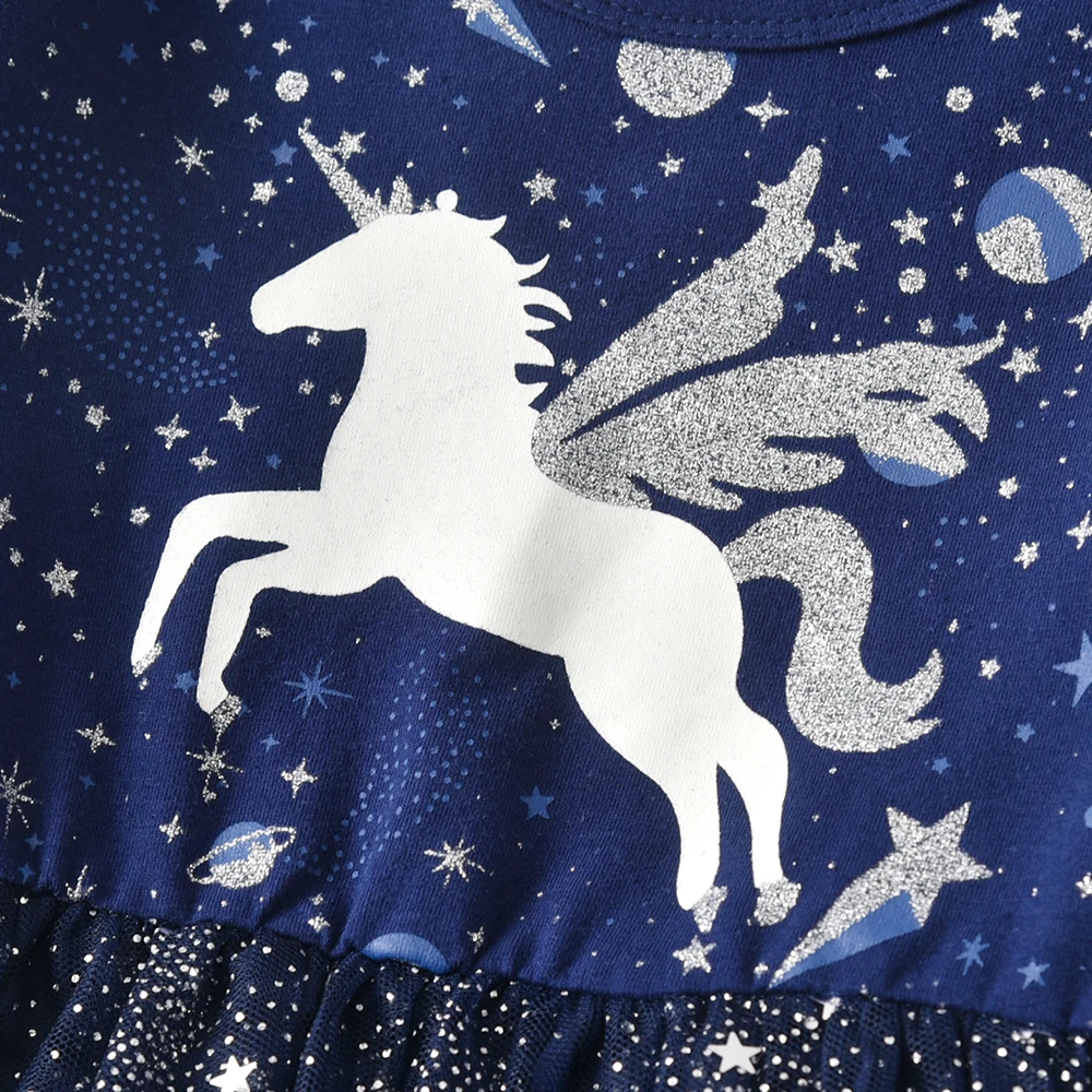 DXTON Ruffled Sleeve Kids Princess Dress Starry Galaxy Print Children Daily Clothing Dot Tulle Unicorn Girls School Casual Dress