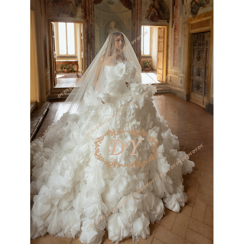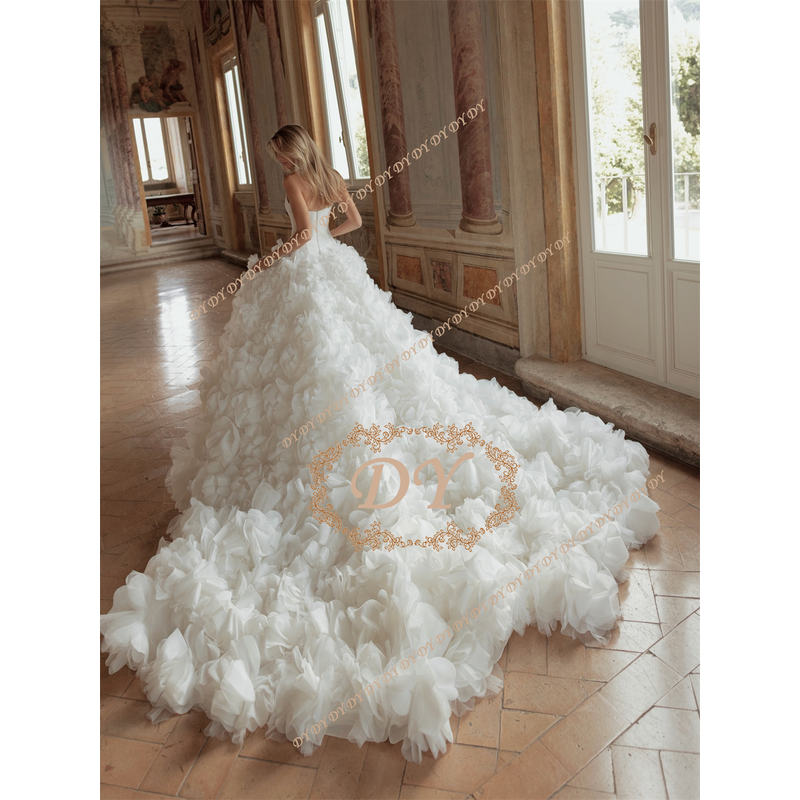 DY Luxury Strapless A-Line Wedding Dresses 3D Flowers Sleeveless Bridal Gowns Customized Sweep Tail 2026 Robe De Mariage