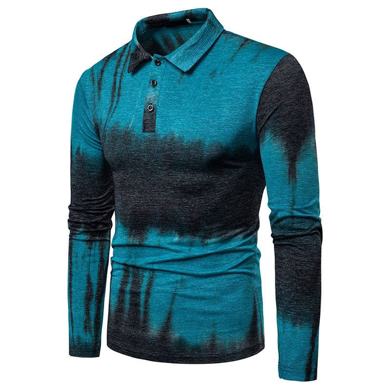 Dynamic Design Men's Lapel Long-sleeved Polo Shirt Blue L