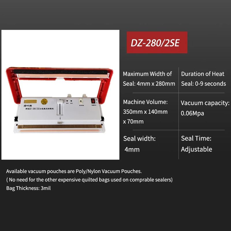 DZ-280/2SE Vacuum Sealer Kitchen Food Storage Bag Sealing Packaging Machine Automatic Food Storage Containers Home Appliances
