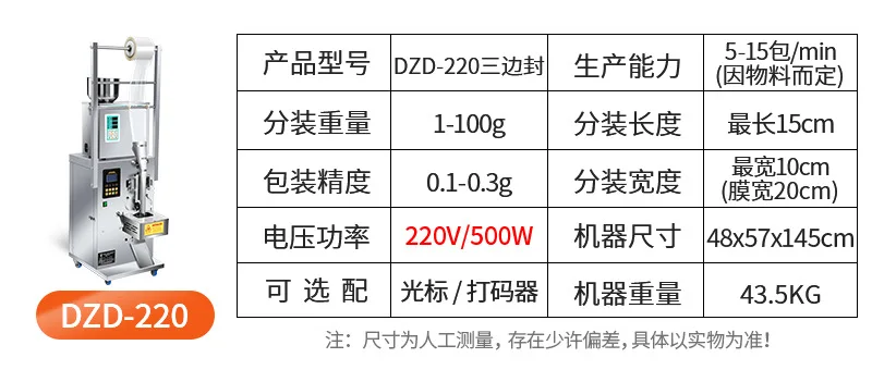 DZD-220 Powder Automatic Three-Side Sealing Food Granule Tea Bag Packing Machine