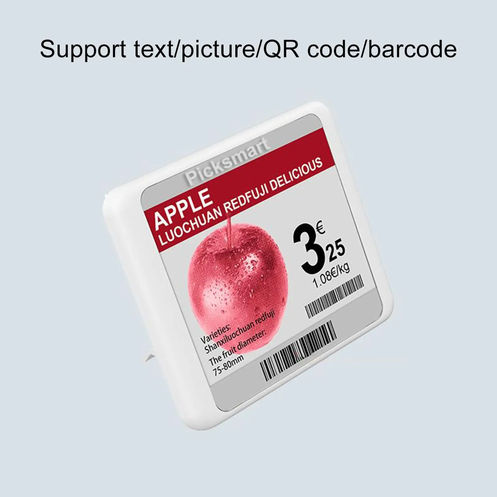 Supported content formats: text/picture/QR code/barcode