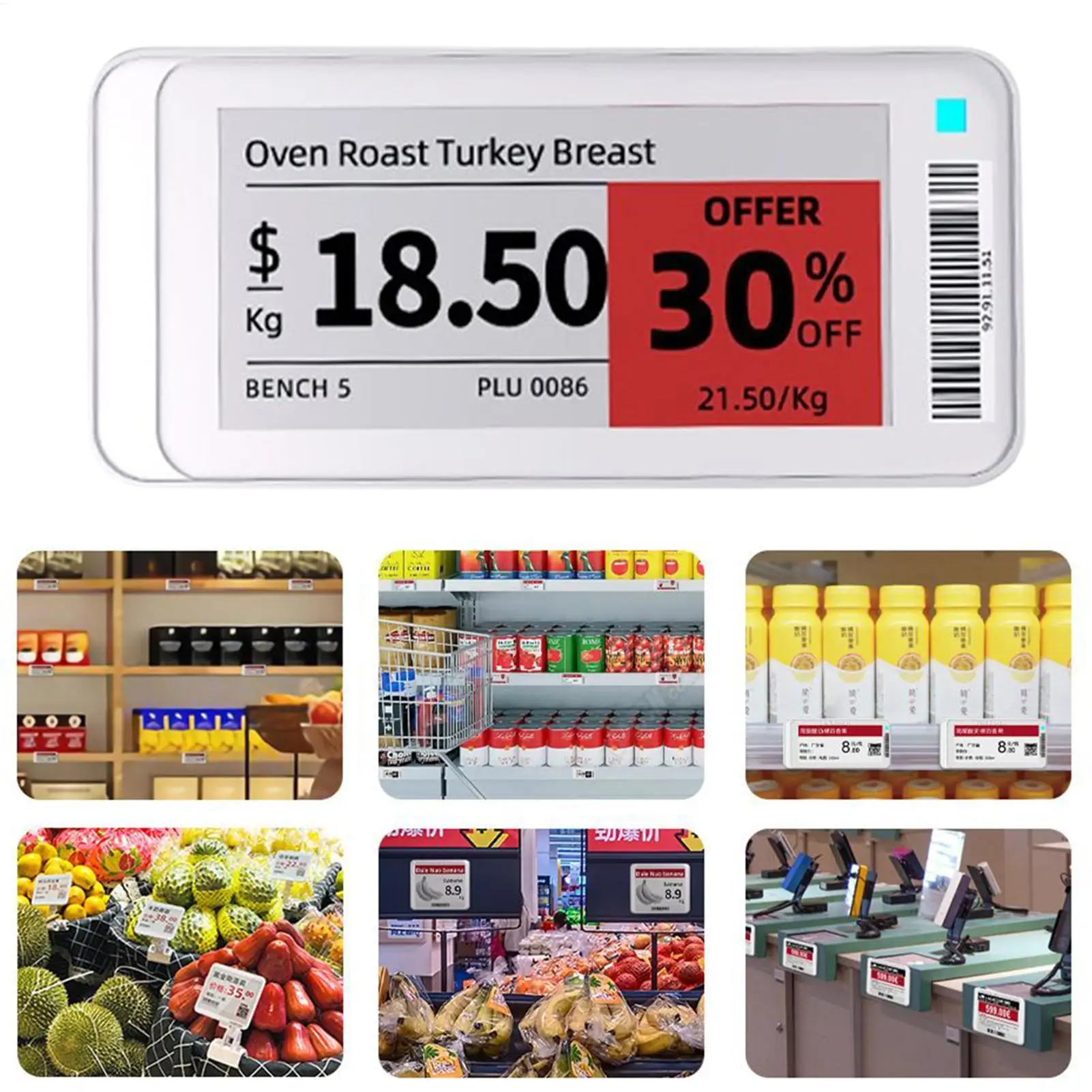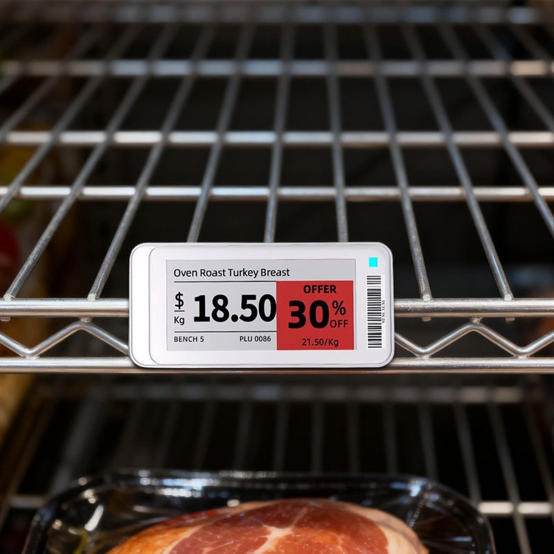 5.Produce Case Ready: With its magnetic clip and double mount options, the Wireless E Ink Tag is tailored for produce case environments, offering flexible placement use on metal shelves, which simplifies inventory management and boosts presentation clarity in retail settings