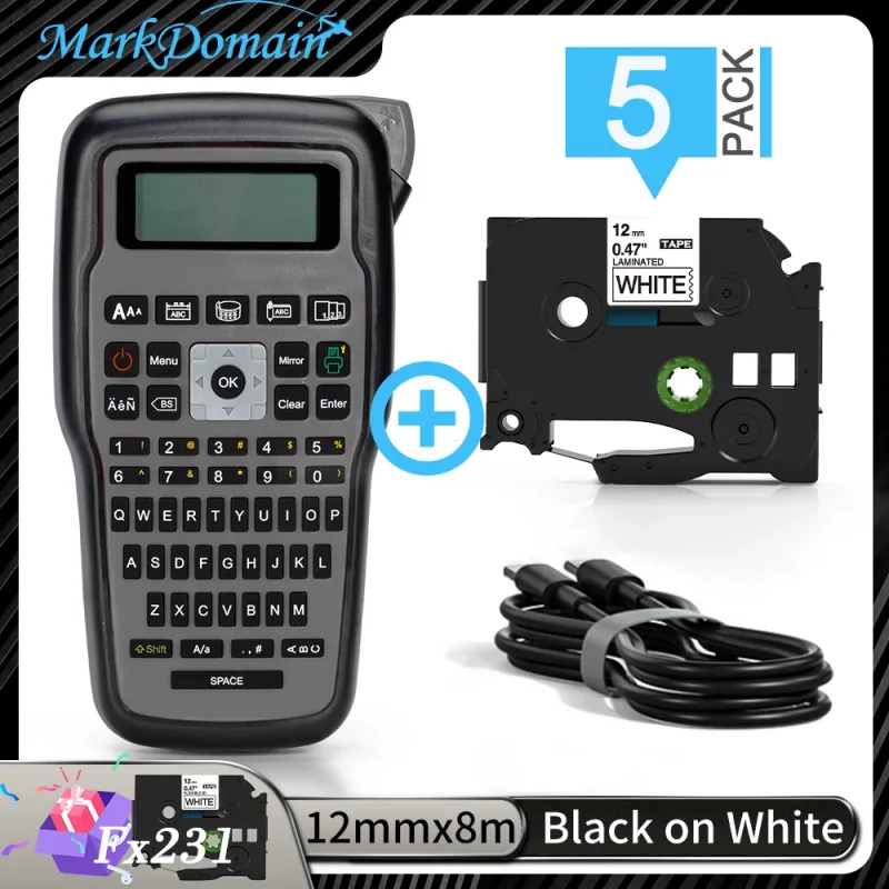 ④ 1-pack 12mm AZe-FX231 label tape: E1000 labeller will come with 1 pack AZe-FX231 label tape black on white, strong stickness and resistance of water, UV, oil, fade, abrasion, etc.. Perfect for indoor and outdoor application;