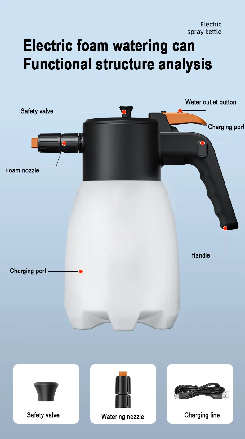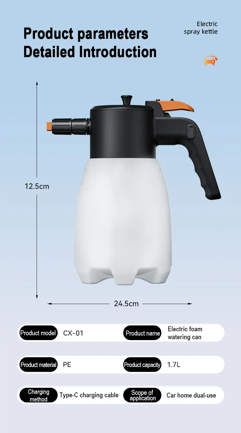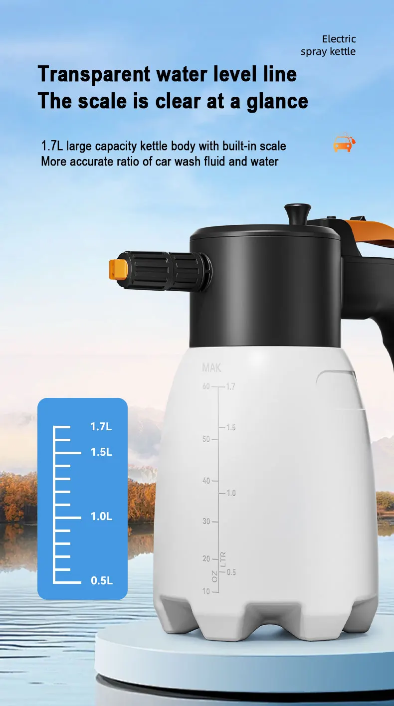 EAFC 1.7L Electric Foam Sprayer Rechargeable Car Wash Foam Generator for Auto Cleaning Foam Lance Endurance Car Washing tools