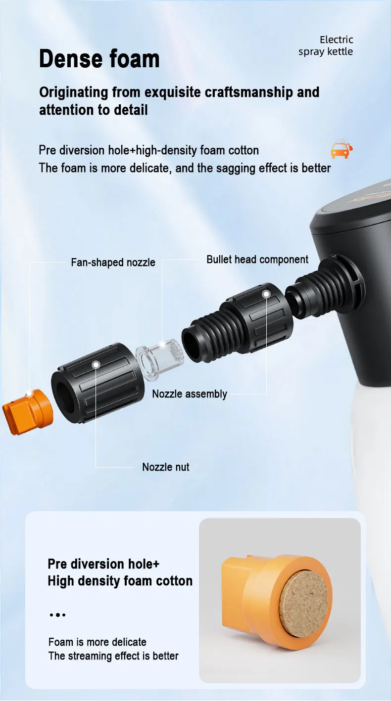 Pre-diversion holes + high-density foam cotton generate rich, dense foam for deep dirt removal