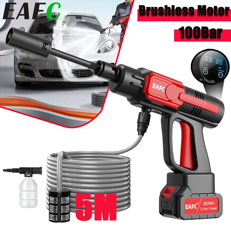 EAFC 100Bar Car High Pressure Cleaner Washer Spray Water Gun Cordless Car Wash Pressure Water Cleaning 20000mAh Battery Washing