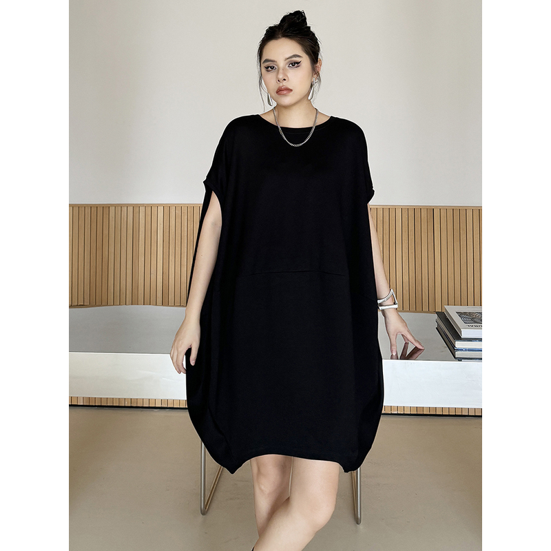 EAM Women Black White Brief Big Size Casual Mini Dress New Round Neck Short Sleeve Fashion Tide Spring Summer 2026 1DH5840