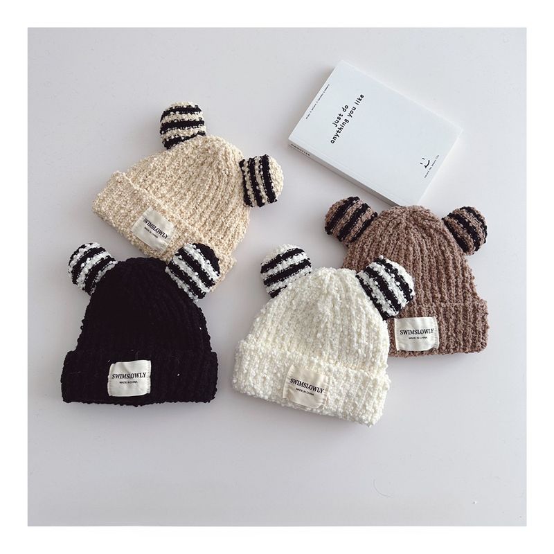 Ear Style Children's Stripes Knitted Hat Warm Coffee 48to52