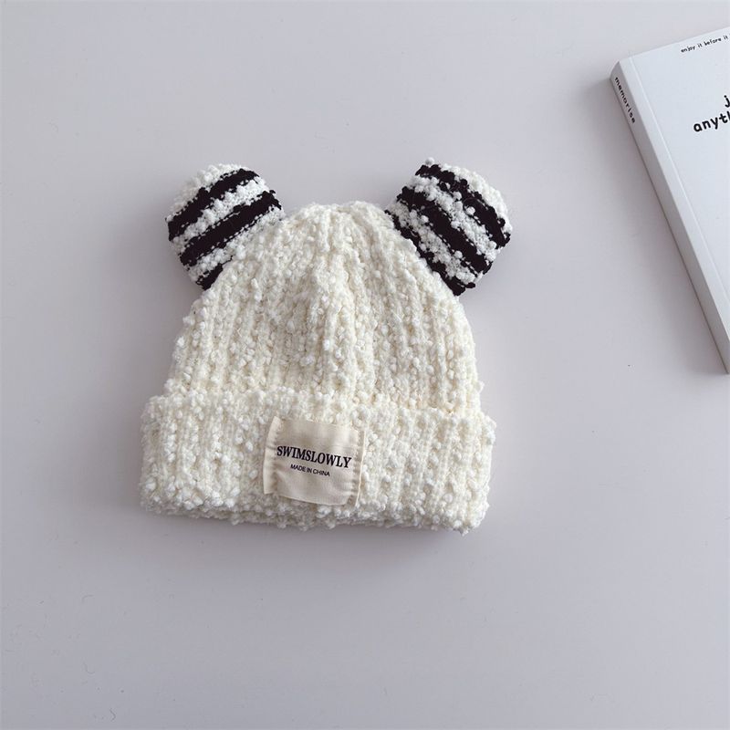 Ear Style Children's Stripes Knitted Hat Warm White 48to52