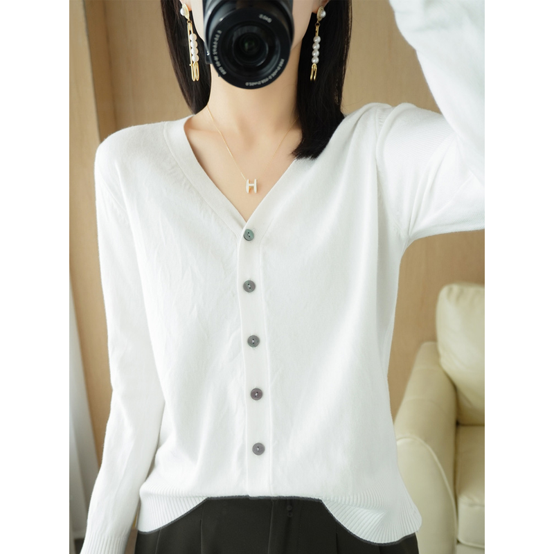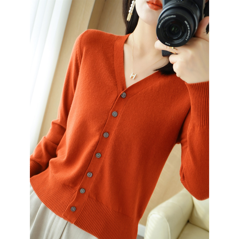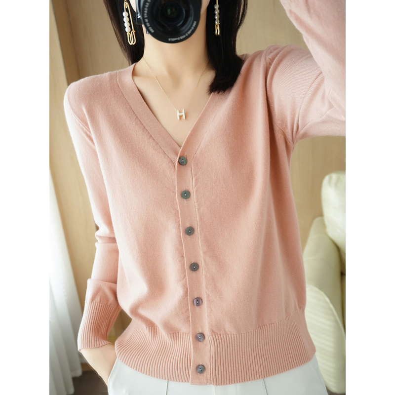 Early Autumn New Andy Cashmere Knit Cardigan V-Neck Solid Color Fashion High-Grade Comfortable Loose Casual Knitwear -GH021
