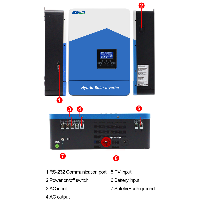 EASUN POWER 7KW 4.2KW 3.2KW 2.2KW Hybrid Solar Inverter 48V 24V 12V 230V With Max 80A 110A MPPT Charge Controller PV Max 450VDC