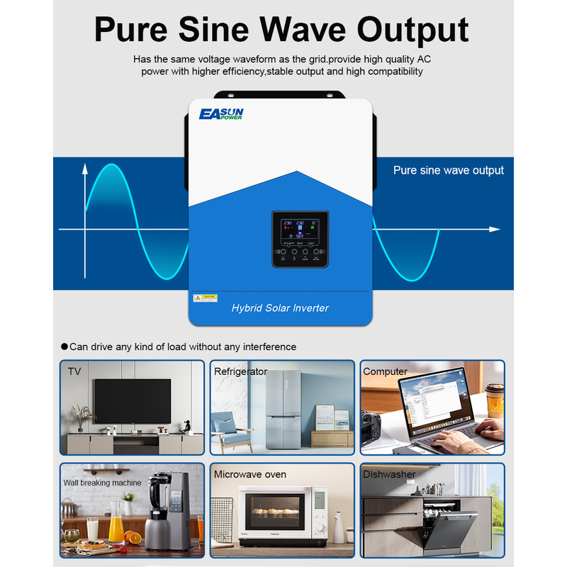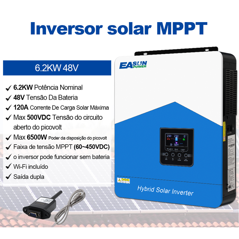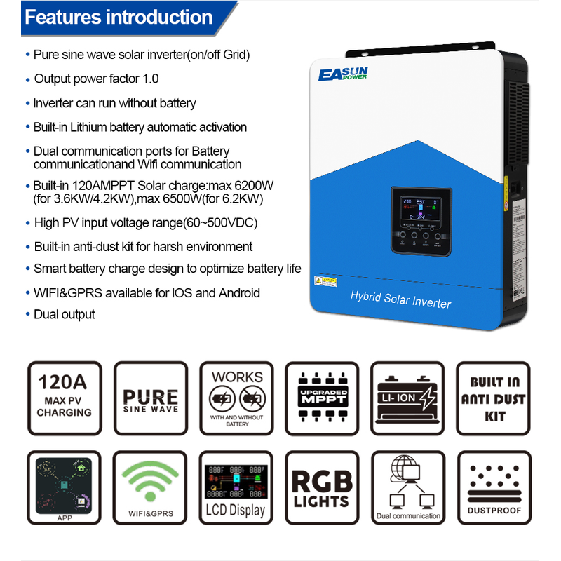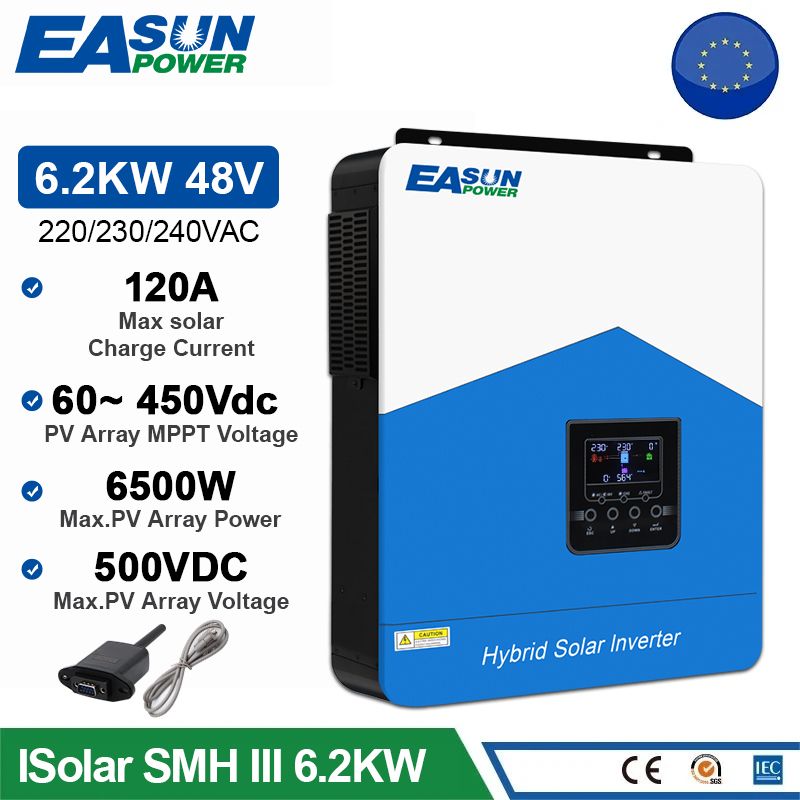 EASUN POWER Hybrid Solar Inverter 6200VA 6.2KW 48V Photovoltaic Hybrid Inverter 230VAC Max PV 450V Build in 120A MPPT Charger