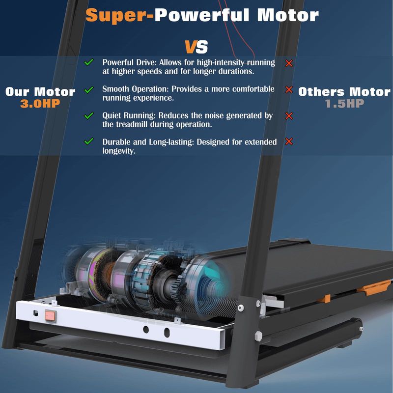 But that's not all!The lifting motor is a game-changer, allowing you to adjust the incline with ease.Whether you're looking to simulate hill climbs or simply want to vary your routine, this feature adds an extra layer of challenge and versatility to your treadmill experience.Designed for both comfort and performance, our treadmill combines sleek aesthetics with cutting-edge technology.It's not just a piece of equipment; it's your personal fitness partner, helping you stay on track and motivated every step of the way.